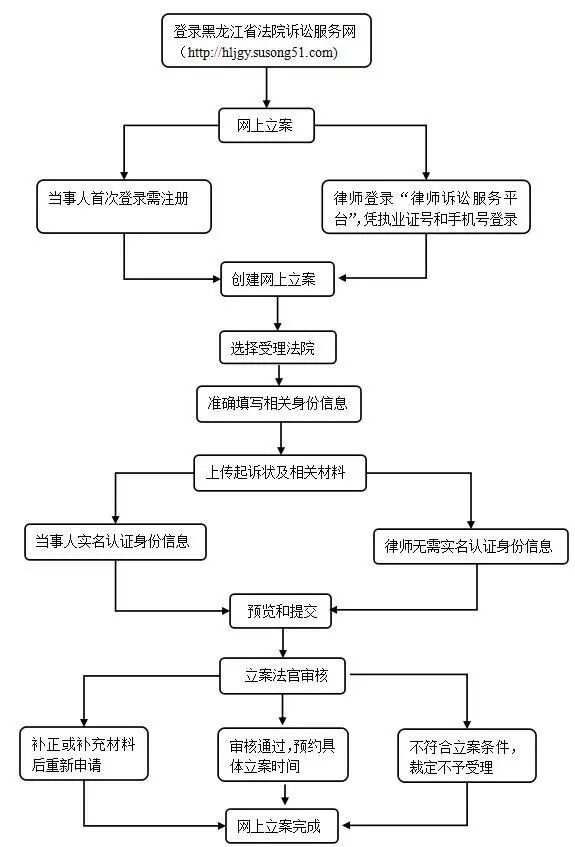 首先当事人可以百度搜索黑龙江省高级人民法院,登录黑龙江省高级人民法院网站后,在网站中选择“黑龙江诉讼服务网”进入系统。然后,点击网上立案,登陆页面有两个链接:当事人注册、律师注册,根据诉讼角色选择注册律师账号或当事人账号。