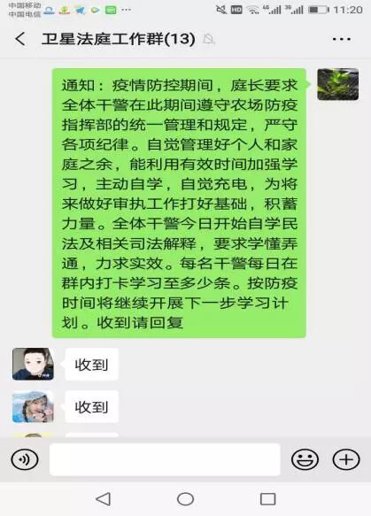 战“疫”期间 卫星人民法庭干警学习“打卡”忙