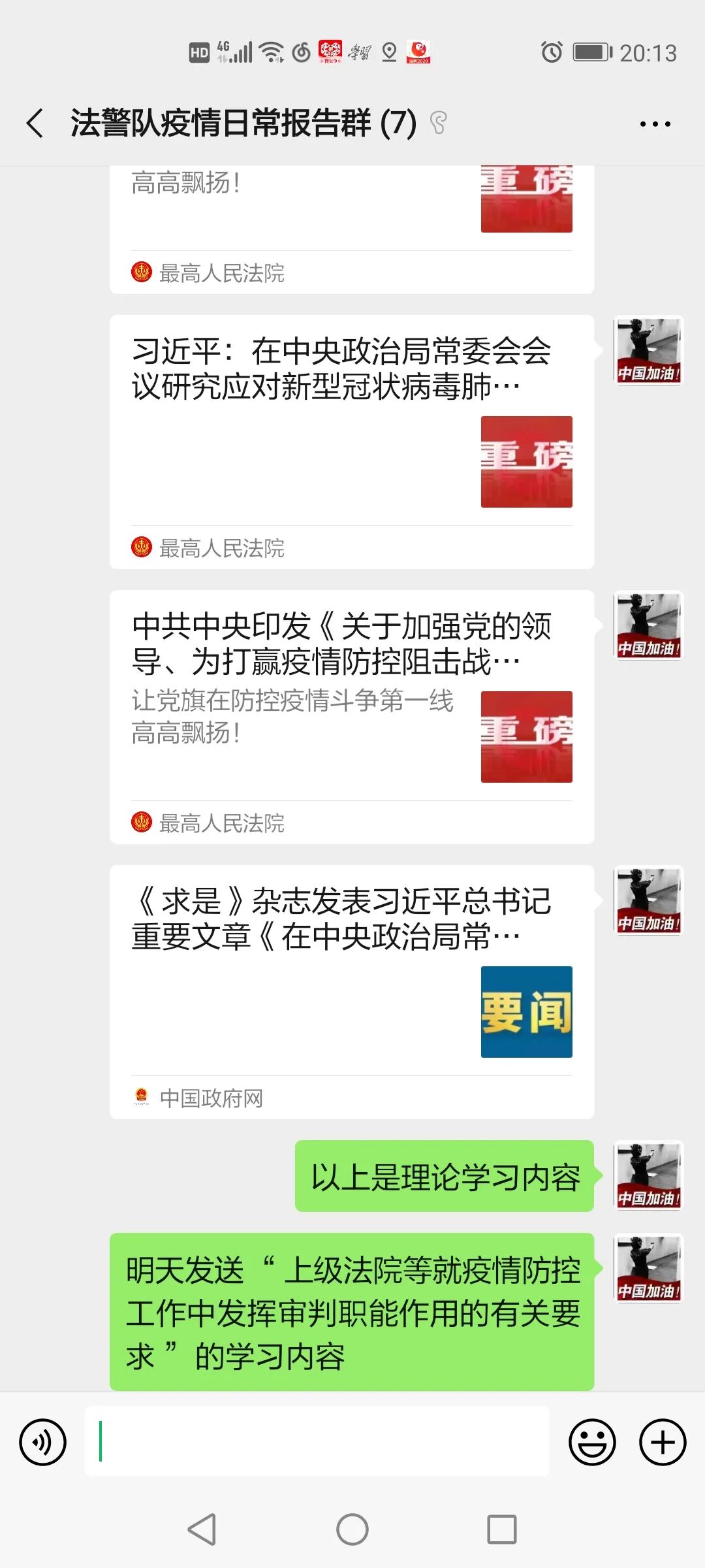 为深入贯彻落实习近平总书记关于应对新型冠状病毒肺炎疫情工作的重要讲话精神,根据上级法院疫情防控期间持续强化理论学习的要求,红兴隆人民法院创新载体及时跟学,打造“学习小组+互联网”模式,创新学习形式,丰富学习内容,确保防疫期间学习氛围不减,学习动力更足。