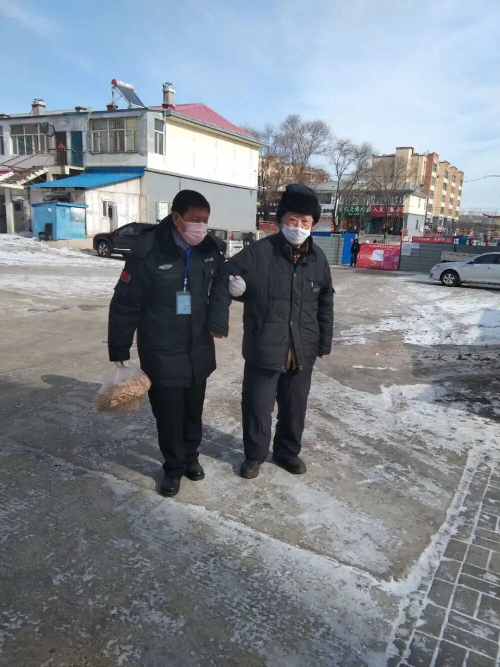 一次次的热情帮助呈现出了一幅幅暖心的画面。栾奎林在流动疫情防控排查时,看见一位80多岁白发苍苍、步履蹒跚的老大爷,手里拎着食品吃力的走着,栾奎林赶紧上前询问老人,经询问老大爷姓郝,去超市买了些零食和药正往家走,栾奎林告诉他:“郝大爷,现在是疫情非常时期,天冷路又滑,我把手机号码给你,以后再需要买生活用品你给我打电话,我给你送家里去。”边说边搀扶着老人送他回了家。