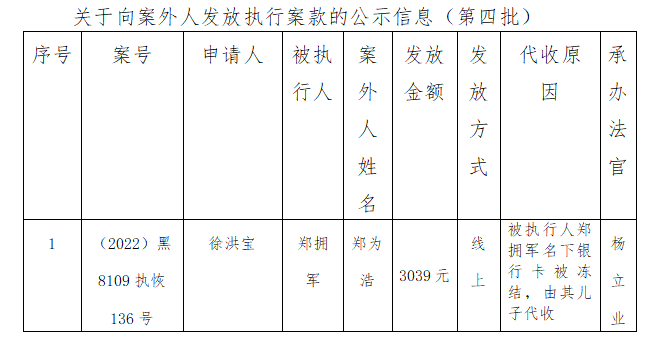 关于向案外人发放执行案款信息的公示