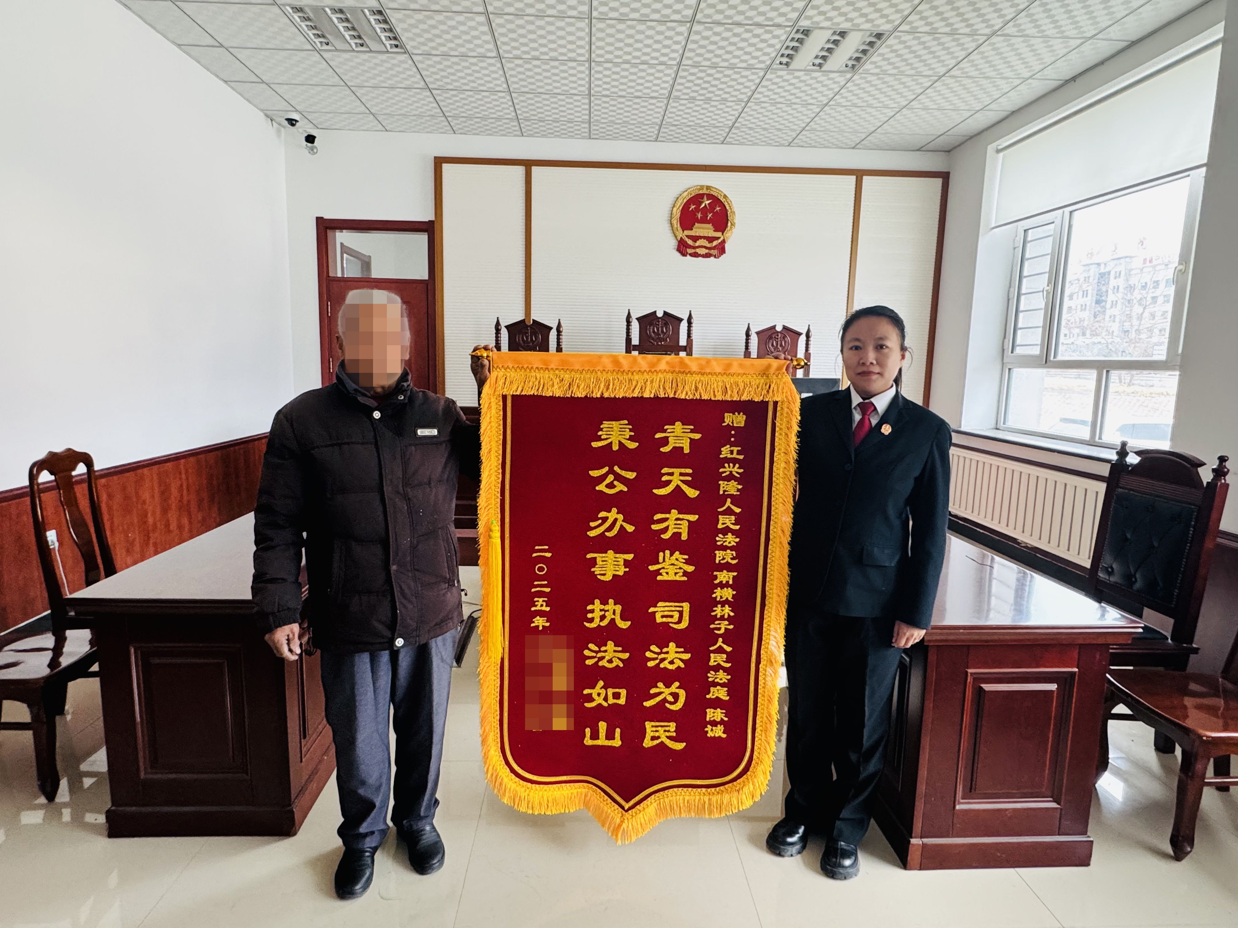 近日,红兴隆人民法院南横林子人民法庭成功调解一起跨越三十余年的民间借贷纠纷,当事人专程来到法庭,送上写有“青天有鉴司法为民 秉公办事执法如山”的锦旗,表达对法庭工作的诚挚谢意。