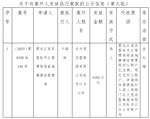关于向案外人发放执行案款信息的公示