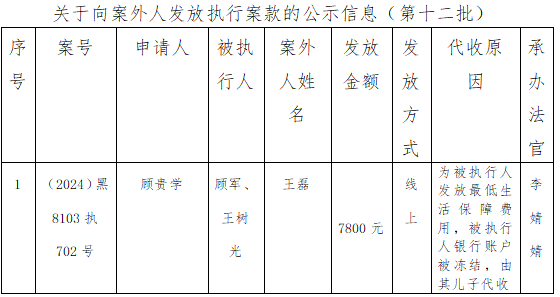 关于向案外人发放执行案款信息的公示