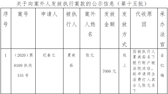 关于向案外人发放执行案款信息的公示