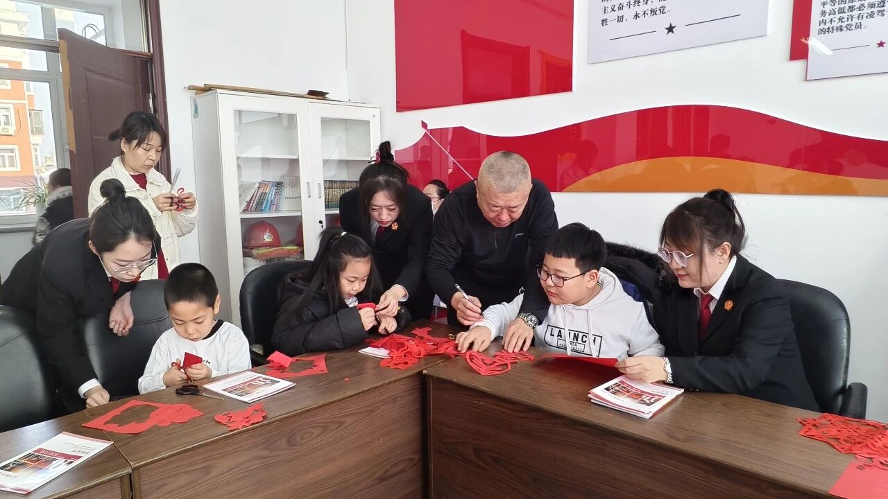 活动现场,温馨热闹。法院干警们不仅带来了精心准备的普法读物,更化身“法治辅导员”和“文化志愿者”,与社区居民一起剪窗花、写福字、话家常、普法律。