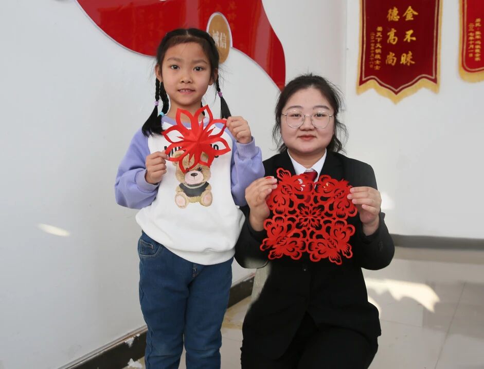 剪纸互动环节,干警们指导孩子们剪纸技巧。从简单的“福”字到复杂的蝴蝶、雪花图案,红色的纸张在指尖翻转跳动,孩子们神情专注,一件件充满童趣和祝福的剪纸作品陆续完成。随后,孩子们自豪地举起自己的作品,与干警合影留念。这一过程,不仅是传统手工艺的传承,更是在孩子们心中播撒了遵纪守法、和谐向善的种子。