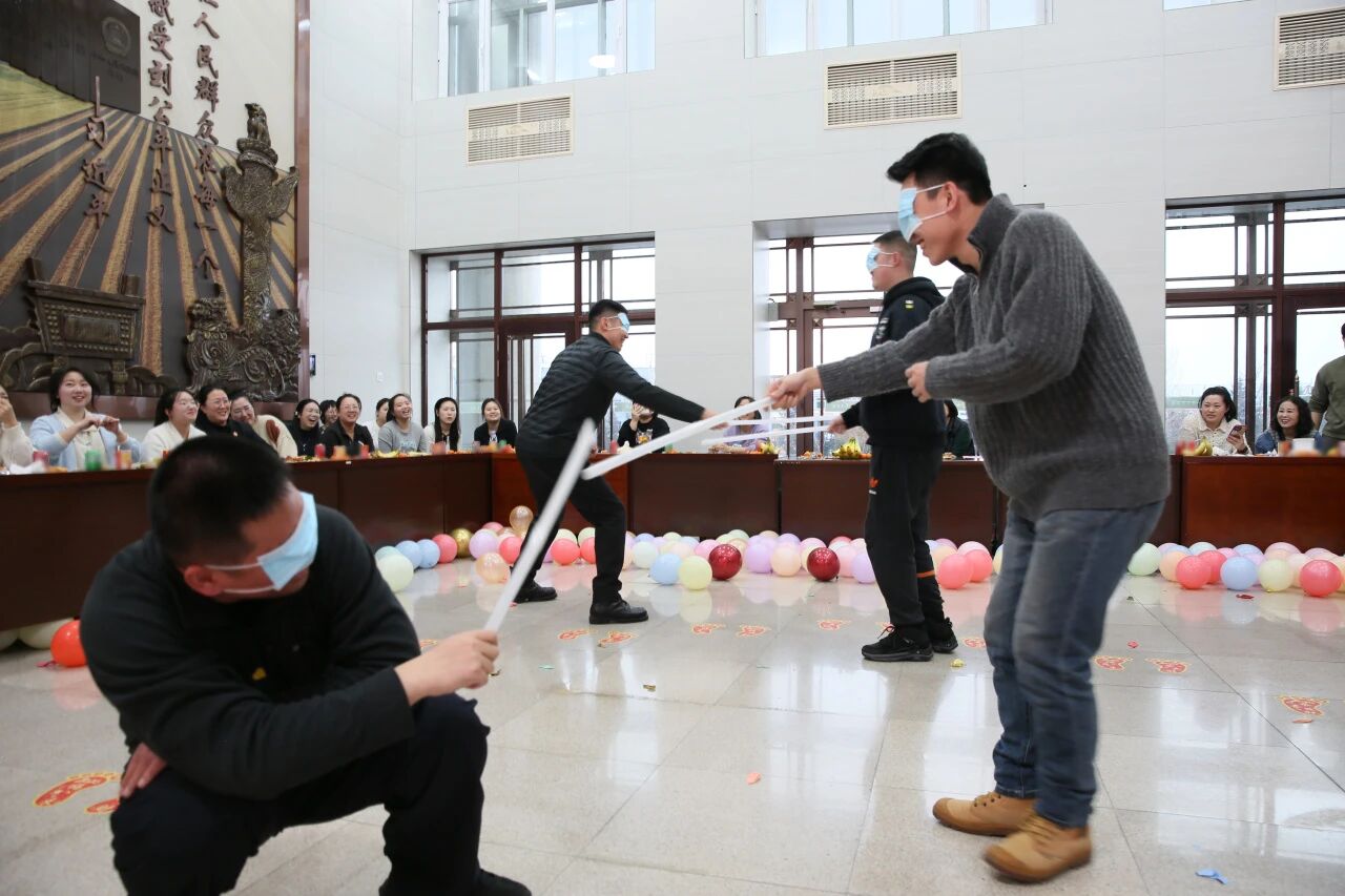 文艺余韵未散,趣味游戏接续欢乐。“马到成功”“进击的石头剪刀布”“抢水瓶”“踩气球”“蒙眼对打”等游戏妙趣横生,竞技与协作并存。干警们踊跃参与,或默契配合,或机智交锋,场上比拼热烈,场下助威声声,欢笑声、加油声、喝彩声此起彼伏,团结、欢乐、温馨的节日氛围洋溢在整个现场。