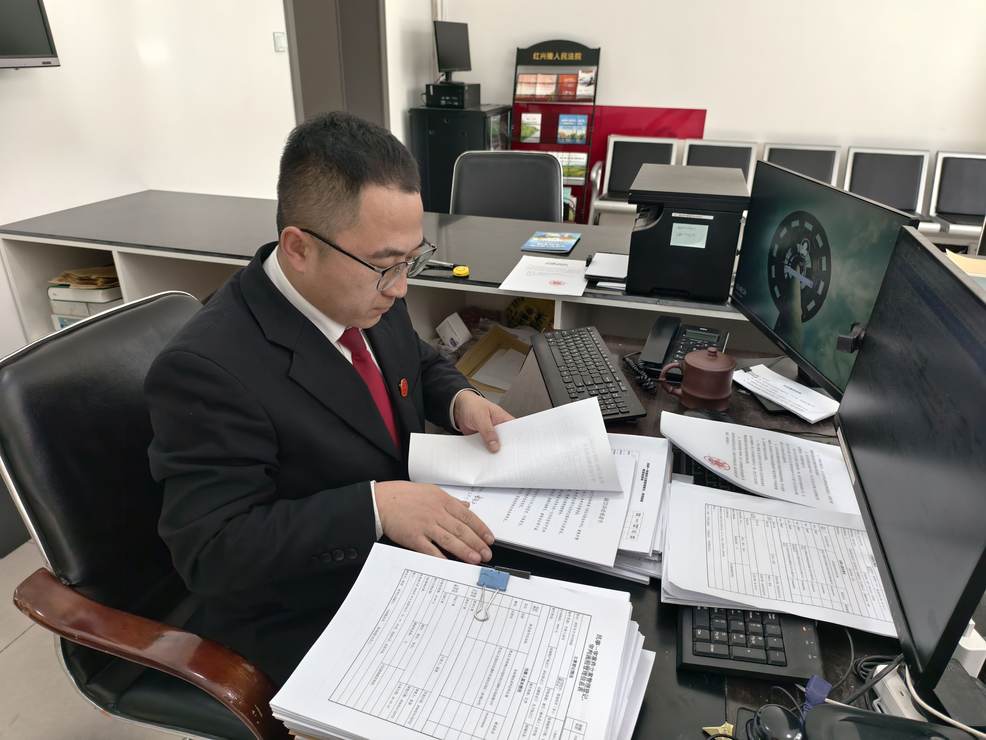 “新年要有新气象,服务保障要跟上。”综合部门的干警们也在各自的岗位上忙碌着。收发文件、筹备会议、整理档案、调试设备、保障后勤……他们有条不紊地梳理着新一年的工作,用细致入微的服务,为审判执行工作顺利开展护航。