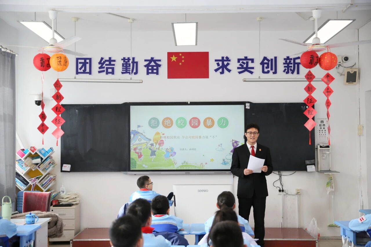 红兴隆人民法院刑事审判庭干警、友谊县第三小学法治副校长孙明浩,以“拒绝校园暴力”为主题,用通俗易懂的语言拆解肢体欺凌、言语欺凌、社交排斥等常见形式,结合审判实践中的典型案例,以案释法、以法析理,明确指出校园暴力并非“孩子间的打闹”,而是可能触及法律红线的行为,引导学生认清校园暴力的危害,学会在遭遇侵害时勇敢说“不”,主动向老师、家长求助,不做沉默的受害者,不做冷漠的旁观者。