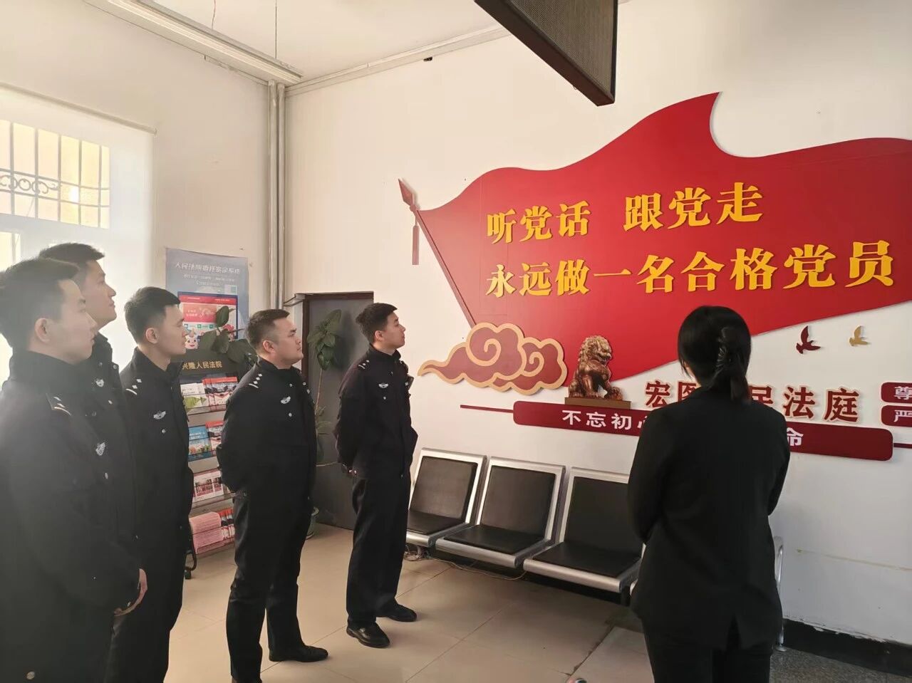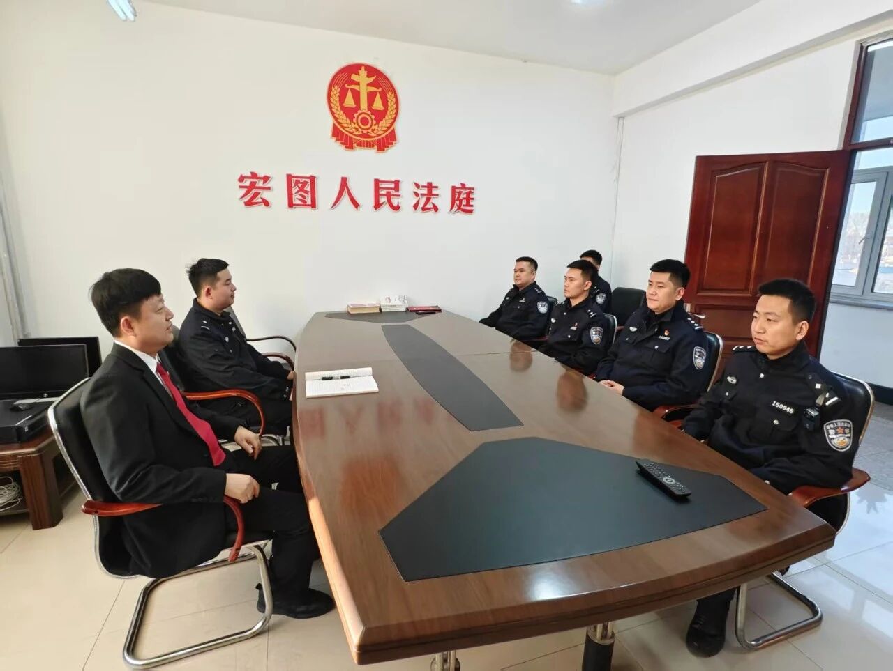 活动伊始,在法庭干警的引导下,民警们依次参观了立案窗口、审判庭、调解室、文化墙等场所。法庭干警详细介绍了各项司法便民举措。参观过程中,民警们对法庭规范化的管理以及信息化建设成果给予高度评价,也对法院工作有了更加直观、深入的认识。
